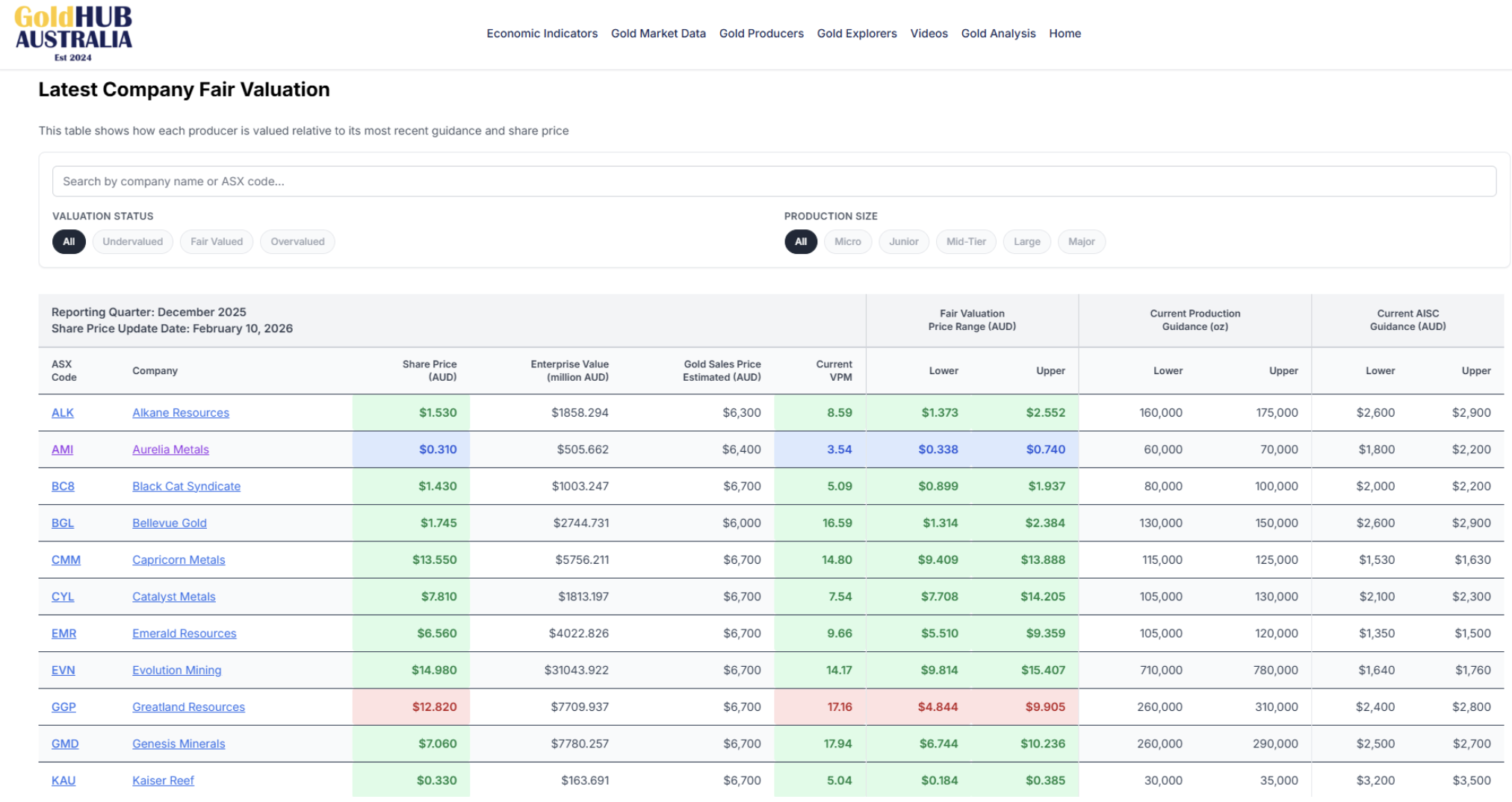 Figure 1: GoldHub Australia Fair Valuation (Source: GoldHub Australia)